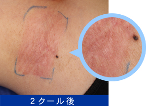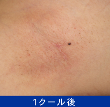 治療初期や固い傷跡に用いるレーザーで、傷あとの減少と軟化に伴い肌の盛り上がりや凹みを平坦化してきます。表層では色素を作る細胞を含む表皮が誘導され色素欠損部位をカバ―させます。
