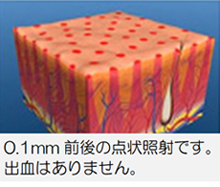 肌にダメージを与えすぎず、スムーズな再生を促進する独自の照射設定です。熱変性で傷あとを間引いた後は通常の皮膚が再生し入れ替わります。