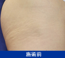 一度生じてしまうと、セルフケアでは消えることはありませんが、フラクショナルレーザー照射によるリモデリング効果による引きつれと拘縮を改善します。リサーフィス作用により白く抜けた色素欠損を目立たなくして、肉割れ線(ストレッチマー)・妊娠線を改善することができます。